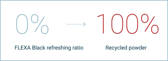 2 Flexa malzemeleri 100 [%] kullanılabilirliğe sahiptir. Çıktı parametrelerini mümkün olduğu kadar yüksek tutmak için, her seferinde %10 oranında taze toz eklemenizi öneririz.