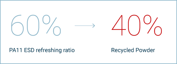 1 Tazeleme oranı, baskı sonrası sinterlenmemiş malzeme ile karıştırılması gereken tazeleyici toz miktarıdır.